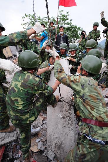 這次抗震救災,投入的部隊多,有數萬之眾,可謂千軍萬馬;受災范圍廣,救援戰線長、規模大、困難多;搜救幸存者的時間十分緊迫,任務十分艱巨;參戰人員來自各個部隊,隸屬關系各不相同。這對組織指揮提出了很高要求。組織嚴密、指揮得當,就能把各種關系協調好,把各種力量整合好,從而最大限度地把官兵的積極性調動起來,把部隊的戰斗力激發出來,取得事半功倍的效果。從這個意義上說,組織指揮的科學程度,決定了抗震救災的力度和進度;組織指揮出戰斗力、出高效率。這個效率,就是拯救出更多的生命。