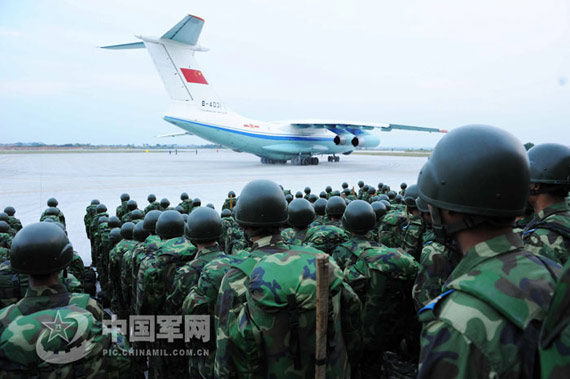 解放軍空降部隊準(zhǔn)備搭乘伊爾-76開赴災(zāi)區(qū)。
