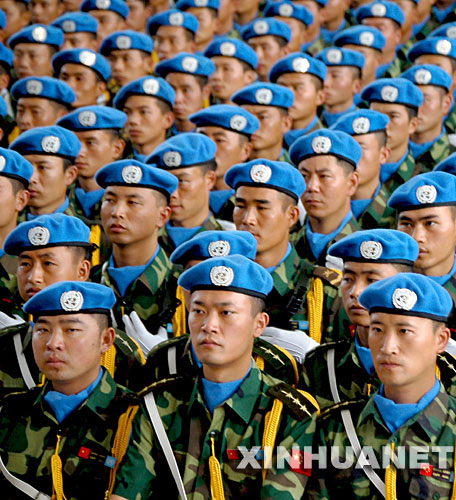 2007年7月27日,維和官兵在第三批赴黎巴嫩維和工兵營成立儀式上。按照維和任務安排,第二批赴黎維和工兵營將于9月初輪換回國。新華社發