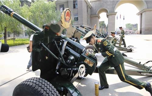 武警戰(zhàn)士對奧運(yùn)禮炮進(jìn)行實(shí)射驗(yàn)收。