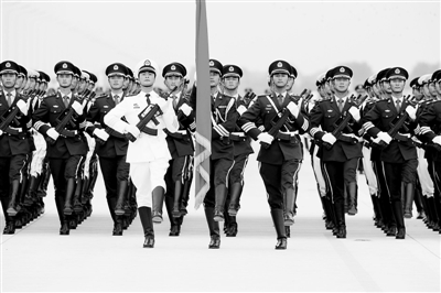 聽!三軍儀仗隊官兵伴著雄壯的軍樂,踏著鏗鏘的步伐,以排山倒海般的氣勢向世人展示:我們永遠是黨的忠誠衛士!細心的人們發現,今年三軍儀仗隊閱兵方隊走得那樣的神氣,那樣的大方,盡顯中國人的自信與風度,盡顯中國軍人的豪情與風采。新中國成立60年特別是改革開放以來,祖國面貌日新月異,綜合國力不斷攀升,人們越來越自信。作為新一代中國軍人倍感驕傲和自豪,邁出的步伐更加堅定與豪邁。