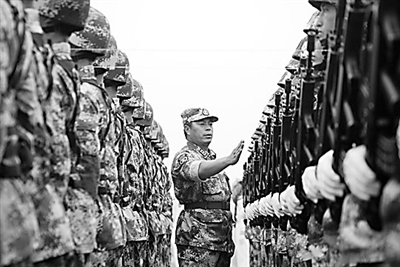 夏季的北京,熱浪滾滾,閱兵訓練場熱得像蒸籠,官兵們卻把訓練標準加了又加。上操一身汗,下操一身堿,曬得黝黑,只有帽帶處留下了一道白色的印痕,官兵們形象地稱之為“閱兵徽記”。“寧掉幾層皮,也要走整齊”、“流兩桶汗水,創一流成績”,這是官兵們共同的心聲。