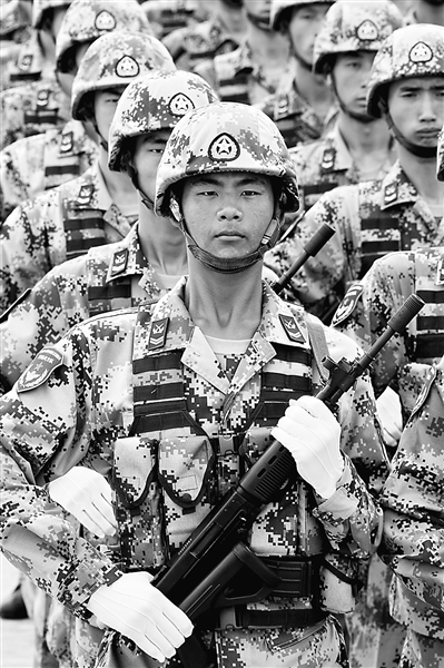 他們是和平時期經常執行作戰任務的一支部隊,今天的特種兵從弓腰的出擊狀態變換成為昂首挺胸的閱兵狀態,他們付出了難以想象的矯形訓練,戰勝了種種艱難和不適應;他們將特種兵義膽忠誠的豪氣、舍我其誰的霸氣、蓬勃向上的朝氣、無所畏懼的勇氣、敢打敢拼的殺氣,融入到了接受黨和人民的檢閱之中,贏得了世人的贊譽。
