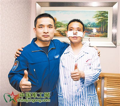 9時16分,飛機降落在跑道上,早已等候在停機坪上的官兵沖了上去。經診斷,張建興面部裂傷7處,頭、面部大面積挫傷,傷口最長達6厘米,深達顴骨,并有骨質暴露,面部需縫合30余針。