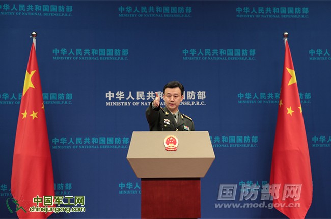 國防部新聞局副局長、國防部新聞發言人吳謙上校答記者問。 中國軍網記者 何友文 攝