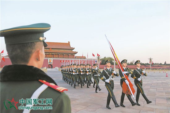 在萬眾矚目中精彩呈現是忠誠,在平凡崗位上堅守奉獻也是忠誠。金水橋畔、國旗桿下、長安街上、紀念碑前……官兵們風雨無阻守衛著天安門、護衛著五星紅旗,時刻聆聽著祖國奮進的足音,深情觸摸走向復興的時代脈搏。他們用絕對忠誠、絕對純潔、絕對可靠的一舉一動、一言一行,詮釋著中華人民共和國的神圣尊嚴,凝聚起同心共筑中國夢的磅礴力量,讓五星紅旗映襯下的天安門更加亮麗和諧。