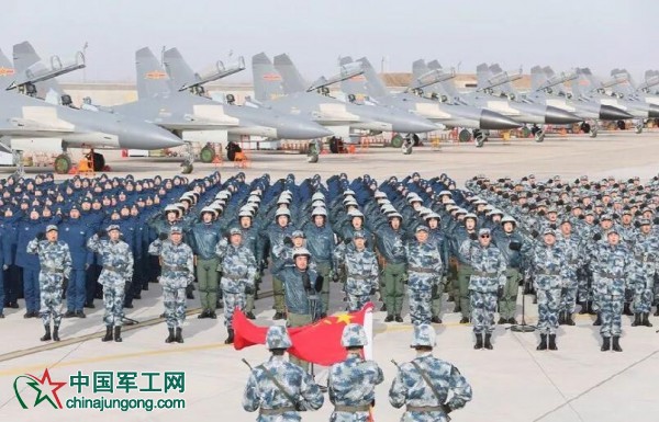 1月3日,華北某機場,寒風凜冽。停機坪上,空軍黨委常委、參訓飛行員和地勤官兵列隊陣前,英姿煥發;數十架戰機一字排開,蓄勢待發。