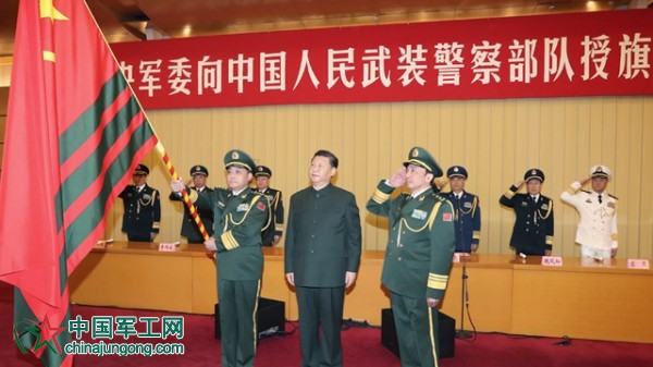 中央軍委向武警部隊授旗儀式今天在北京八一大樓舉行。中共中央總書記、國家主席、中央軍委主席習近平向武警部隊授旗并致訓詞。