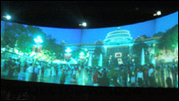 該系統采用了4臺松下4000流明DLP工程投影機,配合4通道融合拼接系統。形成了一幅30余平米的巨幅畫卷。隨著近年來投影技術的飛速發展,特別是DLP技術在亮度、色彩、對比度、分辨率上的不斷創新,高亮度的DLP正投影拼接顯示系統,憑借其均勻的亮度、豐富的色彩,特別是相比傳統的箱體式背投和等離子拼接等產品,DLP正投影拼接顯示系統具有極高的性價比和較小的安裝空間等優勢,在眾多博物館、城市規劃管、虛擬現實等顯示應用中發揮著巨大的作用。