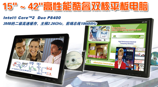 上海,12月10,2009,威強近期推出具有高性能15寸 ~ 42寸大屏幕的AFOLUX酷睿雙核平板電腦,為廣大用戶提供低成本、高性能、高清晰產品。威強AFOLUX酷睿雙核平板電腦,配有Intel® Core 2 Duo P84003MB的二級高速緩存,主頻2.26GHz,前端總線1066MHz,15寸 ~ 42寸的尺寸選擇,可以滿足不同領域用戶的需求。