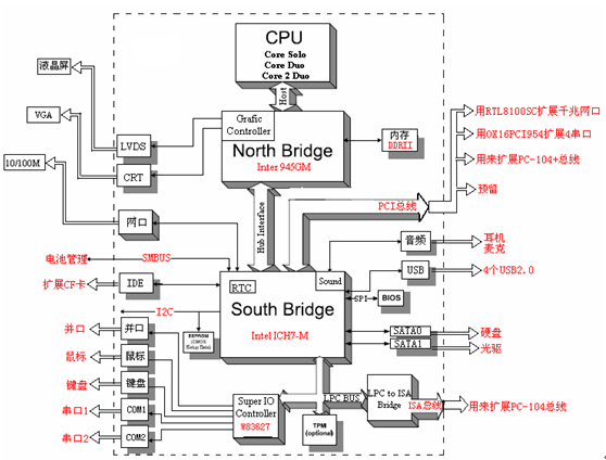 浪潮野金剛新型全加固計算機主板設計遵循ETX工業規范,ETX即Embedded Technology eXtended (嵌入式技術擴展)的縮寫,是一種工業SOM(模塊系統)應用的新標準,板上集成聲卡、VGA、LVDS顯示、網口、USB和標準的I/O CPU子系統,使得其擴展更加靈活,易于系統升級,并且最大限度縮短開發周期。浪潮野金剛新型全加固計算機設計過程中充分利用ETX特點,滿足用戶常用接口的同時,在其有限空間內,預留標準PC104PLUS擴展位(PC104PLUS標準,集成ISA和PCI總線,不但能擴展低速的串口、CAN總線,也能擴展高速的RS485\RS422接口和視頻采集卡,繼承了使用浪潮I、II型全加固產品的擴展性,滿足用戶的各種使用要求。整機預留6個航空插頭擴展位,以適應于客戶在特殊領域的航空連接器的擴展需求。其原理框架圖如下: