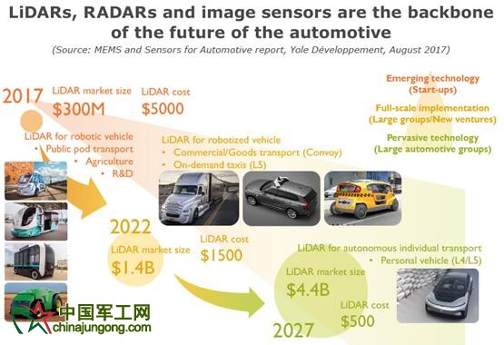 激光雷達(dá)、雷達(dá)以及圖像傳感器是未來(lái)汽車的支柱,圖片引自《汽車MEMS和傳感器市場(chǎng)及技術(shù)趨勢(shì)-2017版》