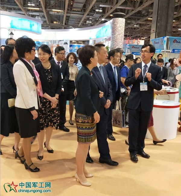 石景山副區(qū)長周西松帶領(lǐng)澳門特區(qū)經(jīng)濟(jì)財政司司長梁維特、北京市副市長程紅等領(lǐng)導(dǎo)參觀石景山企業(yè)展區(qū)