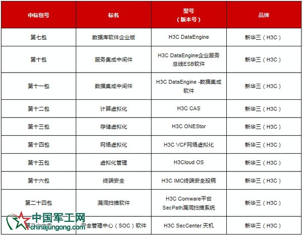 新華三本次中標(biāo)產(chǎn)品信息如下: