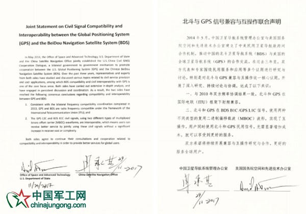 中美簽署北斗與GPS信號兼容與互操作聯(lián)合聲明