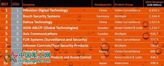 • 2017全球安防50強--大華躍升至世界前三