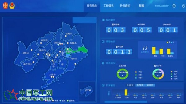 司法警務指揮平臺可與法院現有的調警管理系統進行對接,獲取完整的調警信息以及警力分配情況。調警數據以柱狀圖的方式清晰直觀地展示在任務動態中,每個任務詳情包括任務名稱、區域、人員、時間以及相關視頻,根據這些警力分配數據可更加快速科學地調用警力資源。