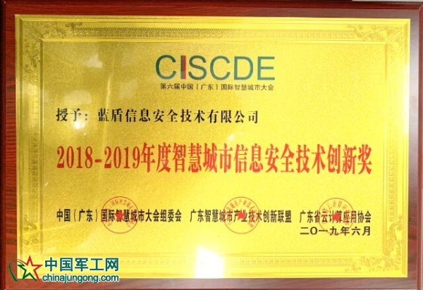 藍盾股份榮獲2018-2019年度智慧城市信息安全技術創新獎