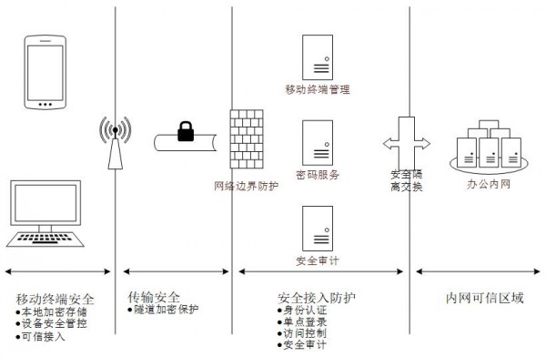 作為固定辦公的延伸,它集“私有安全工作空間”“終端可信接入”“VPN專(zhuān)屬網(wǎng)絡(luò)及加密傳輸/存儲(chǔ)通道”“訪問(wèn)后全行為審計(jì)”等四大亮點(diǎn)于一身,不僅打破了常規(guī)辦公場(chǎng)所和辦公時(shí)間的限制,更以出色的性能表現(xiàn)滿(mǎn)足了各企事業(yè)單位對(duì)移動(dòng)辦公計(jì)算環(huán)境、通信網(wǎng)絡(luò)、數(shù)據(jù)資產(chǎn)、網(wǎng)絡(luò)邊界等安全防護(hù)的需求。