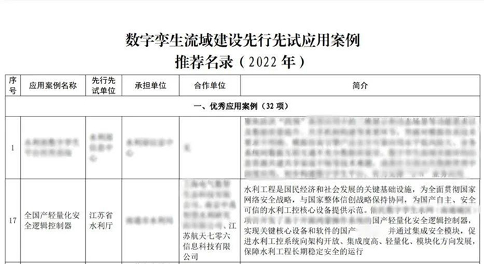 近日,水利部公布《數(shù)字孿生流域建設先行先試應用案例推薦名錄(2022年)》,航天科工二院七〇六所江蘇公司與合作單位聯(lián)合申報的“全國產(chǎn)輕量化安全邏輯控制器”成功獲評優(yōu)秀應用案例。