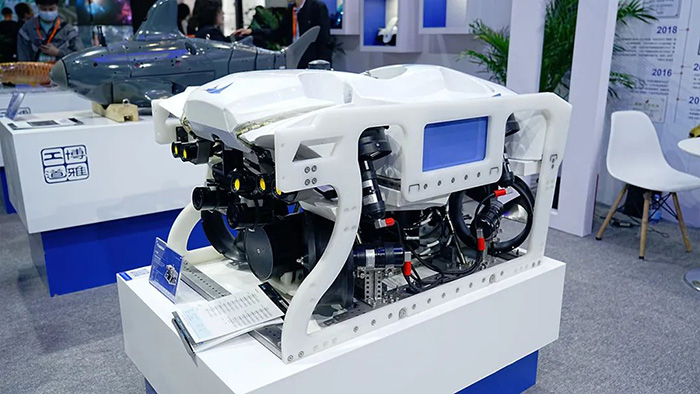 博覽會現場,輕型作業級水下機器人 R-150 初次公開。R-150 具有高性能、強海況適應性等特點,采用高強度框架材料和大功率推進系統,拓展能力強,可以滿足一定強度的海工作業需求。其優越的性能指標媲美國外同量級競品,實現國產化替代。
