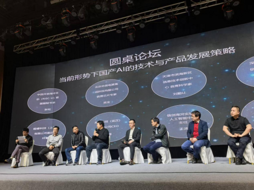 在圓桌論壇環節,RISC-V副秘書長張松就國產AI發展和七位行業專家展開深度對話,容芯致遠首席科學家張彥朝指出:“AGC架構已在國內多個重點行業驗證,推理效率提升3倍以上。”兆松科技CEO范澤分享:“我們開發的RISC-V專用編譯器可將CUDA遷移損耗控制在15%以內。”信創海河實驗室主任王濤強調:“要通過開源協作突破技術壁壘,構建自主可控的AI生態。”