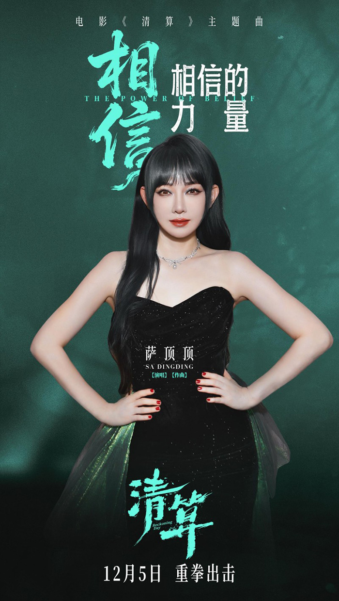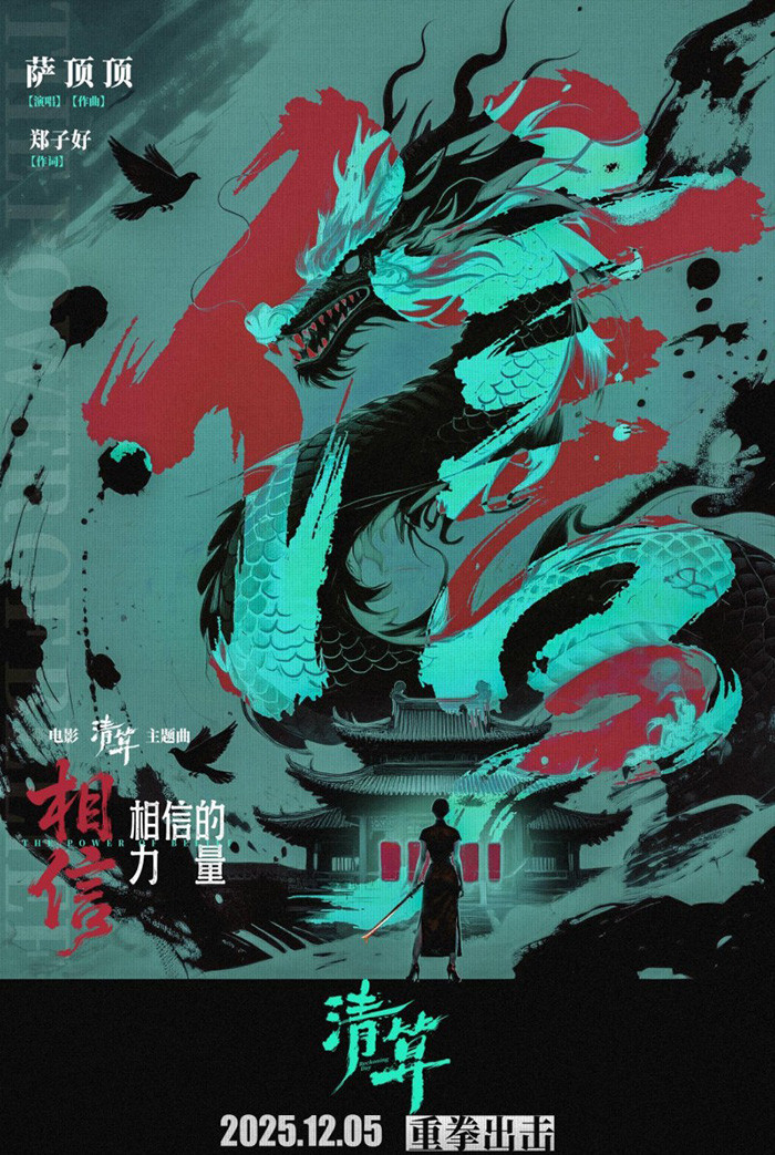 同時發布的兩款海報,則將此信念視覺化、儀式化。主題曲海報以磅礴的“信”字占據視覺核心,輔以盤旋而上的龍形圖騰,昭示著華夏民族溶于血脈的尊嚴與“堅持到底”的堅定信念。薩頂頂獻唱海報則捕捉了歌者沉著堅定瞬間,與主題交相輝映,共同構筑起影片的精神內核。