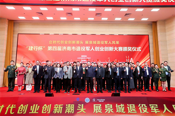 12月10日,“建行杯”第四屆濟南市退役軍人創業創新大賽頒獎儀式在中國建設銀行股份有限公司濟南分行成功舉辦。濟南市退役軍人事務局、濟南市教育局、濟南市工業和信息化局、濟南市人力資源和社會保障局、濟南市農業農村局,濟南市總工會、共青團濟南市委等7個活動主辦單位以及活動支持、承辦單位建設銀行濟南分行、啟迪之星有關負責同志為大賽獲獎項目和獲得“優秀組織獎”的6個單位頒獎。