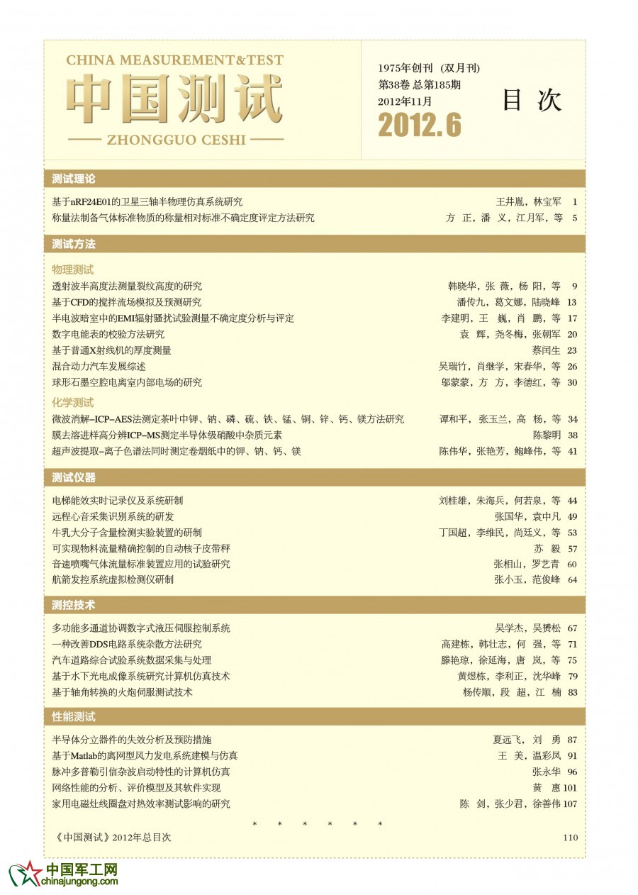 中國測試,中文核心期刊,2012年第6期目錄