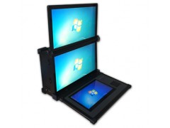 NS4P231是凌昊智能®自行開發的一款三屏便攜計算機產品,該產品具有可上下翻轉的兩個21.5英寸1080p高清液晶顯示屏(最大開合角度為180°,帶鋼化玻璃),同時具有一個14英寸的觸摸液晶顯示屏。三個屏幕可以支持顯示相同或不同的內容,在畫面顯示和操作使用上完全滿足用戶要求。