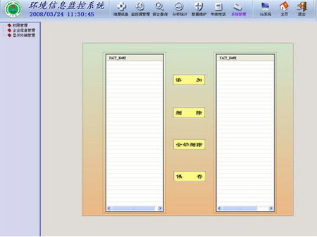 監控源管理以企業為單位,主要包括監控源的常規信息管理,排污口管理,和治理設施管理;在線監測儀管理可以動態添加排污口,采集儀,各種模擬設備和開關設備的添加,并可以指定模擬設備的標準數值和報警的上下限。
