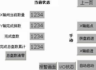 主流程:啟動---初始化回原點---落料檢測到---x軸運動到位置---落料檢測到---x軸運動到位置。。。。x軸軸向數量到---x迅速返回啟動位,y軸移動一個距離到第二排,準備第二行排餅。。。。。y軸行數到,并且x軸數量到達,一個排結束----z軸向下移動一個,更換一個烘盤----第二個盤。。。。。。-----盤數到,停止。