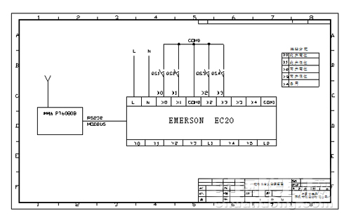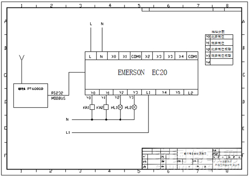 采用一臺(tái)EC20-1006BRA作簡(jiǎn)單的繼電連鎖,除了和舊系統(tǒng)進(jìn)行連鎖(互鎖),還有變頻器的簡(jiǎn)單啟動(dòng)和停止及報(bào)警。本系統(tǒng)還另外裝有一臺(tái)EC20-1006BRA,通過串口與一臺(tái)數(shù)傳電臺(tái)相通訊(MODBUS),來實(shí)現(xiàn)和另外一個(gè)水泵房(凈環(huán)泵房)實(shí)現(xiàn)連鎖。當(dāng)璇流井有高液位報(bào)警時(shí),通過PLC及數(shù)傳電臺(tái)傳送到凈環(huán)泵房,由操作人員確定水泵的啟動(dòng)和停止(由于二者距離太遠(yuǎn),且不適合電纜敷設(shè),所以采用無線數(shù)傳的方式)。 其中璇流井內(nèi)PLC設(shè)置為主站,凈環(huán)內(nèi)PLC為從站。數(shù)傳電臺(tái)采用深圳科立訊生產(chǎn)的PT6080無線數(shù)傳電臺(tái)是利用先進(jìn)的單片機(jī)技術(shù),無線射頻技術(shù),數(shù)字處理技術(shù)設(shè)計(jì)的功率較大,體積較小的模塊式半雙工數(shù)傳電臺(tái),采用SMT新工藝,選用高質(zhì)量的元器件。抗干擾能力強(qiáng),精致堅(jiān)固,結(jié)構(gòu)緊湊,安裝方便。數(shù)話兼容,數(shù)傳可優(yōu)先。RS232、RS485及TTL多種接口可供選擇,適應(yīng)面寬。參見下面原理圖: