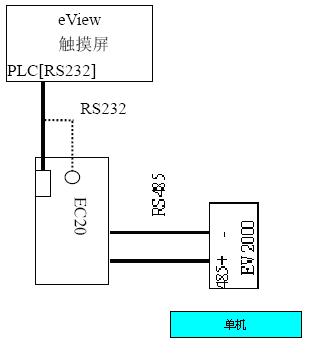 1、在本自動控制系統中,變頻器我們采用了美國艾默生,同時,為方便用戶進行實時監控設備運行狀態以及便于維修,我們采用了人機界面觸摸屏,控制器采用了艾默生EC20,由于它具有兩個通訊端口,并且可任意選擇通訊協議,組網方式如下: