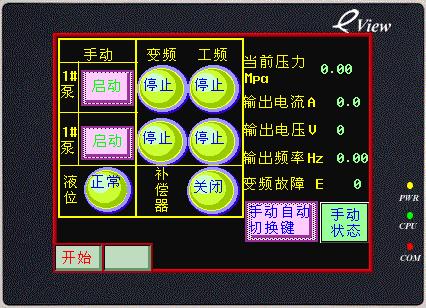 3、通過此種組網方式,用戶對于壓力設定、輸出頻率、輔泵頻率、PID數值、切換時間、 延時時間、超壓設定、壓力反饋等數十種參數可在觸摸屏上顯示、 設置、修改,方便操作。對水泵工作狀態、變頻器工作狀態 和系統水位等多個參數,實現了即時跟蹤。滿足遠距離監測、監控及控制功能。