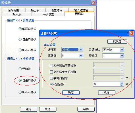 2.1 通過系統塊界面設置EC20的通訊端口1的自由口協議參數,