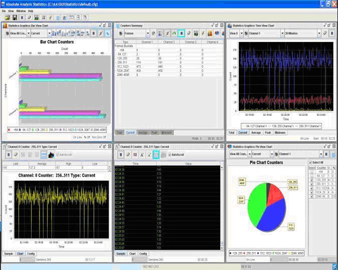 4、基于全部數(shù)據(jù)的實(shí)時(shí)統(tǒng)計(jì),能夠?qū)崟r(shí)察看數(shù)據(jù)的流量、帶寬占用率、10Bit錯(cuò)誤、CRC錯(cuò)誤、誤碼率、每秒鐘傳輸?shù)腇rame的數(shù)量和大小等,并以各種統(tǒng)計(jì)圖表的方式實(shí)時(shí)顯示出來(lái)。可以配置事件報(bào)警,通過(guò)日志紀(jì)錄下來(lái)發(fā)生的事件。