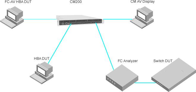 以及CM200自身含有的強(qiáng)大完備的測(cè)試套件庫(kù),可完成對(duì)網(wǎng)絡(luò)中各DUT待測(cè)HBA終端及Switch完成各種協(xié)議一致性測(cè)試,網(wǎng)絡(luò)性能負(fù)載壓力測(cè)試,航點(diǎn)性能的測(cè)試以及視頻數(shù)據(jù)流的測(cè)試等。具體測(cè)試項(xiàng)目如下: