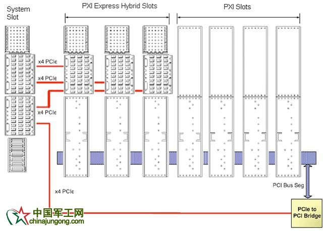 當PCI Express技術被集成到PXI中,基于PXI Express實現許多新應用的同時,許多現有的PXI應用并不會得益于PXI Express的性能提升。比方說,諸如數字萬用表(DMM)、開關模塊、工業I/O、低速總線接口、以及許多主流的發生器和分析儀等I/O應用并不需要背板新增的帶寬。因此,PXI Express規范的一個非常有價值的方面就是PCI以及PCI Express信號都可以被路由到新的插槽中去。其結果是, 擁有PXI模塊的用戶也可以把基于PXI規格的儀器插入PXI Express的機箱,從而保持之前的投資, 儀器廠商也不需要針對新的PXI Express背板而重新設計所有的現有板卡模塊, 與此相反,儀器廠商會繼續生產符合PXI信號標準的產品,因為目前的PCI總線架構可以滿足這些模塊的數據帶寬需求并且所有的混合插槽都支持PCI總線信號(圖3)。