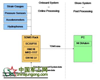基于LabVIEW和NI PXI數據采集(DAQ)硬件開發一個聲納導流罩監測系統(SDMS),來采集處理所有的相關板載數據,并基于NI DIAdem搭建一個后處理系統。